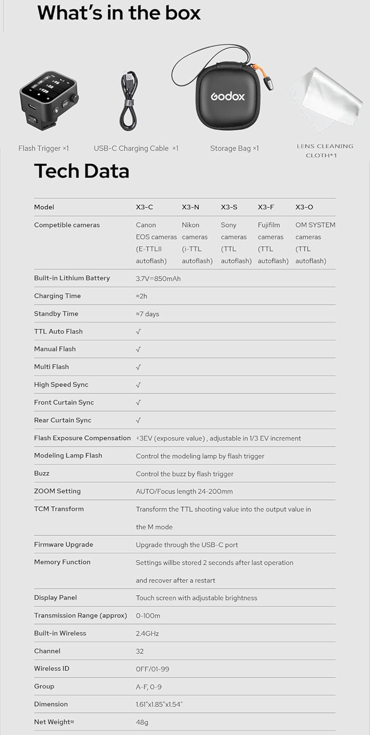 I recently purchased the Godox X3 for Sony and I’m thoroughly impressed with its performance. The compact size is perfect for on-the-go shooting, and the technology behind it is truly innovative. I’m especially fond of builtin battery, touch screen and battery timing. Overall, I highly recommend this product to any speed-light user looking to elevate their photography game!