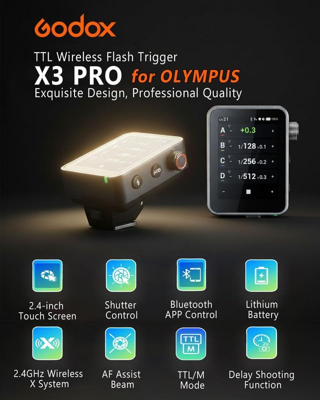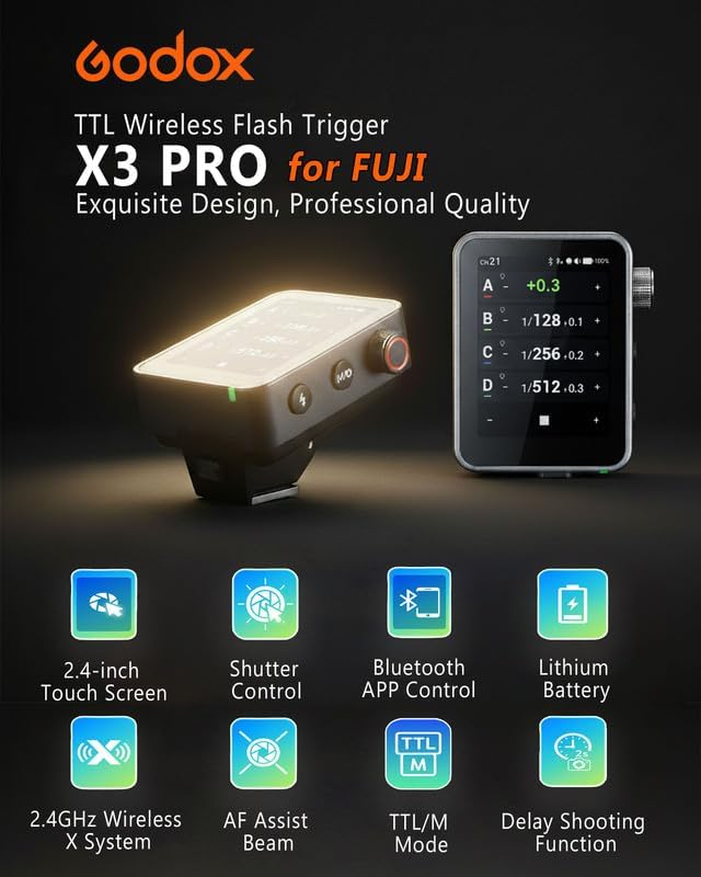 A noteworthy feature is the Wireless Sync-say goodbye to manual matching of trigger and flash. Seamlessly connect the X3 to our upcoming retro camera flash with just one tap.