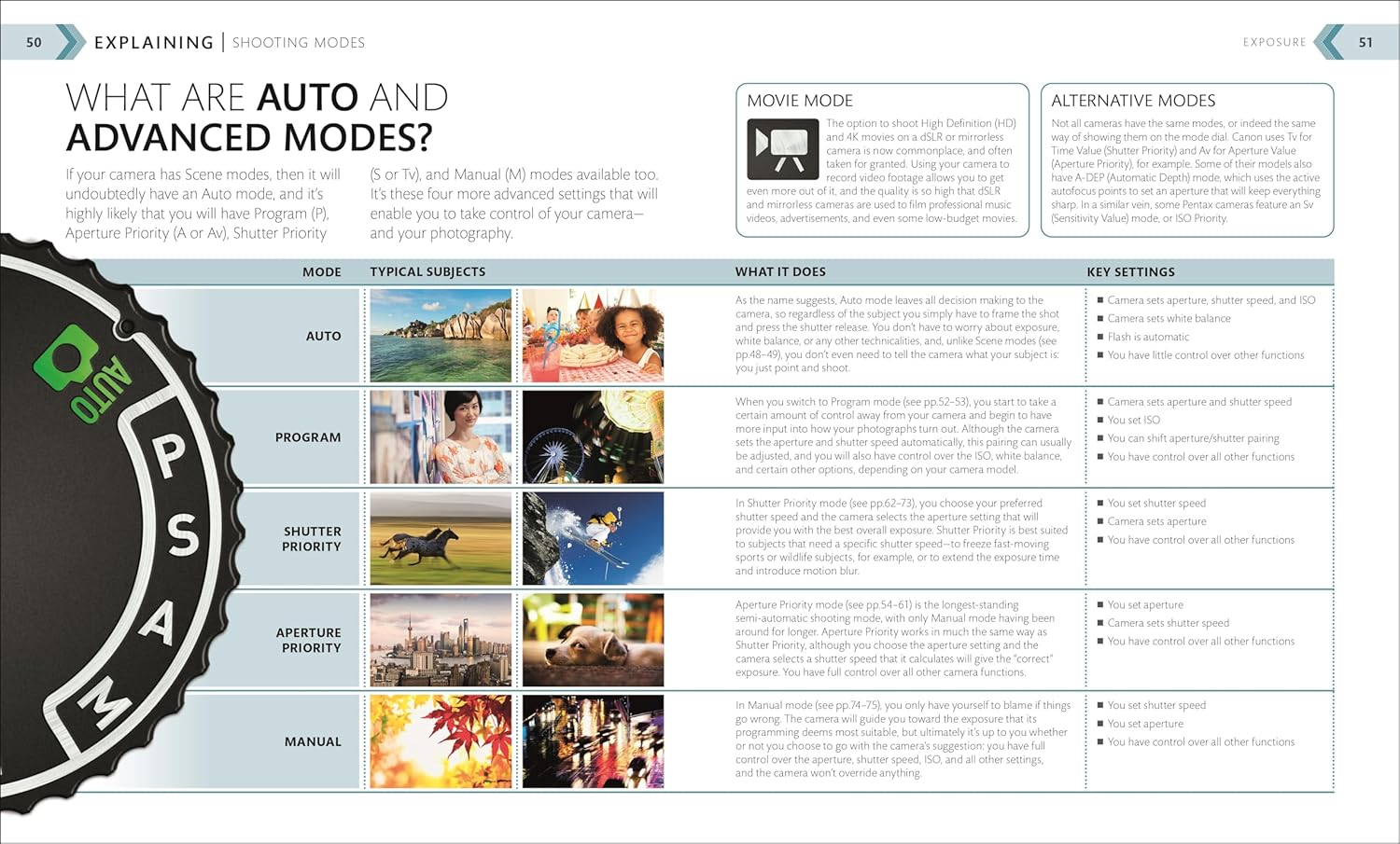 I’ve been a semi-pro photographer for many decades, going through film, medium and large format cameras, to the first digital cameras, through to today’s best Sony and Nikon DSLRs. So, I don’t consider myself a novice to the art and science of photography. But I do continue to look for good books on photography to recommend to friends (and, mostly, their kids) who want to do better than smartphone photographs.This book, and it’s follow-on volume, are two of the best books I’ve seen on the subject of digital photography. Focusing (sorry!) on the Beginner volume, there’s one of the best explanations of the differences between Auto, Program, Aperture, Shutter, and Manual modes in the first few chapters that I’ve seen in a book, and taking not too many words to convey the concepts accompanied by photos that show when and how. In fact, that’s a theme throughout the book: lots of photos illustrating the settings and controls, and the effect they have. For example, talking about exposure, there’s photos to show different exposure corrections, and a (no so beginner) discussion of stacking for effect. Throughout the tone is light and useful. I like the way each spread of two pages is on a subject, providing just enough information for a beginner to “get” the concept and implement it. The book moves to more interesting and technical subjects in the latter part, but it’s done well and should not scare anyone away (a problem with some other Beginner books I’ve reviewed).I’ve already recommended this book to several people and they have all said they learned a lot from reading through (and trying) what’s discussed. Instead of going with plain old Auto mode every time, they experiment with growing confidence, and become better photographers along the way. That’s what a Beginner book should do, and this one accomplishes it well. I’m impressed and wholeheartedly recommend this book both for beginner and Intermediate photographers.